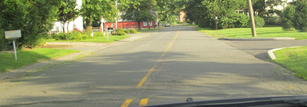 Bordentown Female College commemorative plaque, 1914, looking down the beginning of CR 528 from CR 545 and then back.