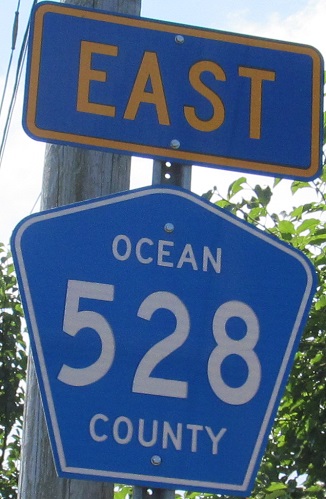 CR 528 WB and EB, respectively, at GSP Exit 89. Compare these to the CORRECT entrance sign on the GSP page (link below). The missing warning on the bottom strip (if you compared that closely) is for trucks, which are allowed south of Exit 105. First (WB) photo courtesy Scott Colbert.