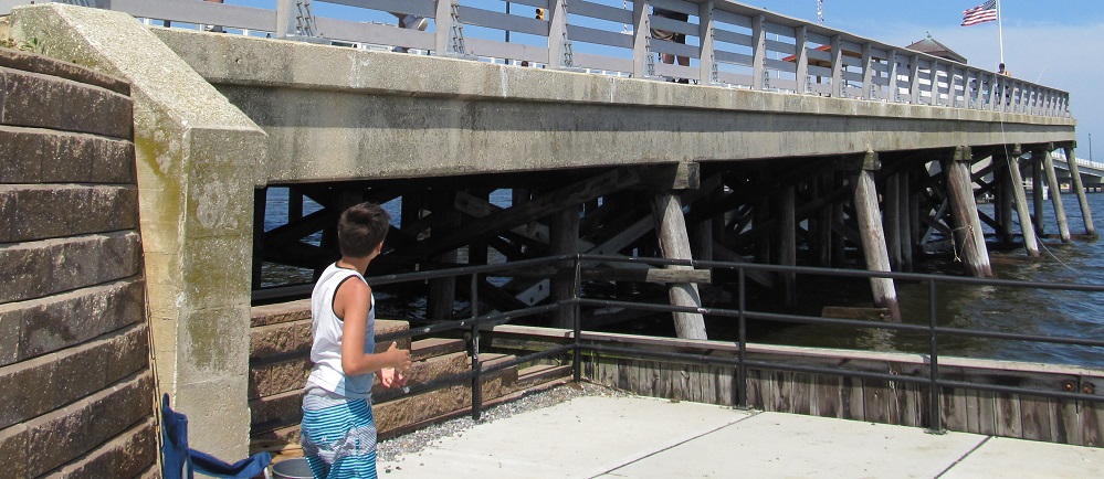 Did you know that there's still a piece of the old Mantoloking Bridge left? Park on the west side and this fishing pier is the original bridge approach, replete with nifty plaque and original deck and sidewalks.