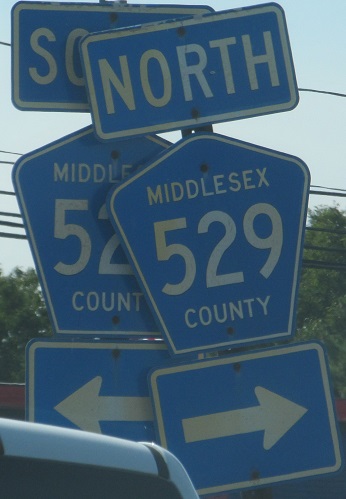 Just north of its humble beginning at CR 514, CR 529 has a historical truck sign, since graffitied on and now torn down along with the rest of the store. Likely, therefore, this is no longer an actual Mack truck factory. It's visible from US 1.