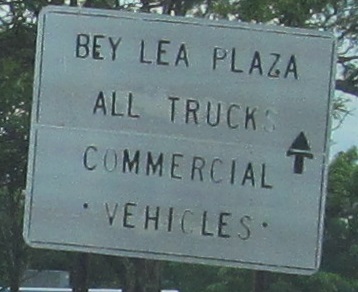 Malls are usually good places to find unusual signs, but the Seacourt Pavilion in Toms River has for a change this old-looking black-on-white sign, dating from the opening of the mall (across from a "real" mall, the Ocean Co. Mall). Hooper Ave. is CR 549, and Bay Ave. is CR 571. By the way, this mall isn't that old at all, so the signs are just poor quality.
