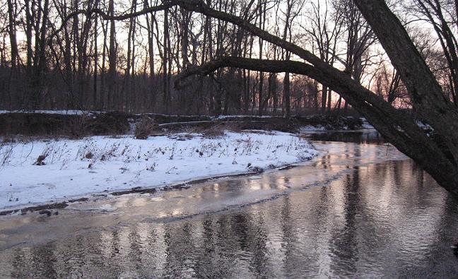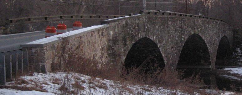 Looking northwest at a very old bridge (19th century) over Stony Brook just before CR 533.