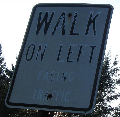 SB and NB in Hackettstown, appropriately on the right side of the road to get pedestrians onto the left side.