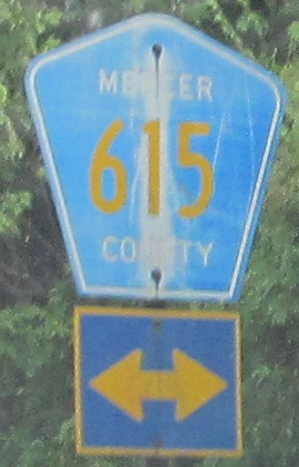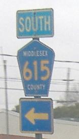 CR 615 turns left north of downtown Jamesburg, courtesy Lou Corsaro. I guess the outer digits were replaced, leaving the middle digit to stand out like the middle finger of a New Yorker you just insulted. (I like that joke so much, it survived being transferred to a new page.)