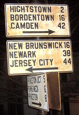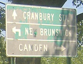 NB and SB at US 130. The SB sign is actually new, so I don't pity it for being knocked over, and hopefully it's replaced with the old one again. Hey, I can dream.