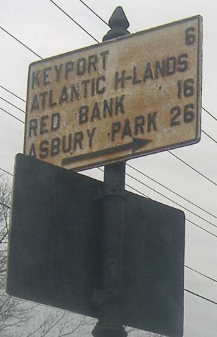 On the northeast corner of the intersection, the sign taking NJ 35 from Bordentown Ave. WB onto Pine Ave. SB, and then a very rare arrow sign for 35 NB traffic to follow what is now CR 615 to Old Bridge. The only other arrow sign I've seen was on CR 527 in Summit (the patch was for the original SHR number, 29), and that has since been replaced.