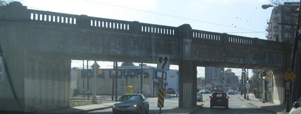 Once overhead on Centre St. EB in downtown Nutley. There's also a Center St. nearby to confuse you.