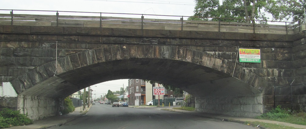 Bayway Ave. used to be a continuous road, but was chopped into pieces when I-278 was tied into the Goethals Bridge. Seen facing west on the eastern segment of Bayway Ave., this old railroad overpass used to span Bayway Ave.'s grade crossing of the freight line that parallels the NJ Turnpike. If you draw a straight line through the I-95/I-278 interchange, it lines up with the rest of Bayway Ave. to the west on NJ 439.