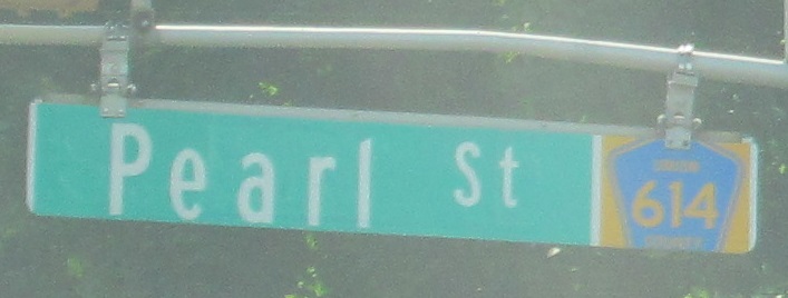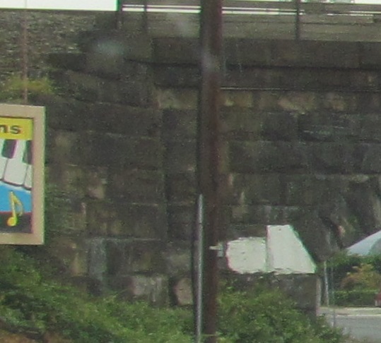 Another view of that freight line from Pine St. I'm impressed with the consistency of not just the height, but painting it in Highway Gothic Series E on the bridge.