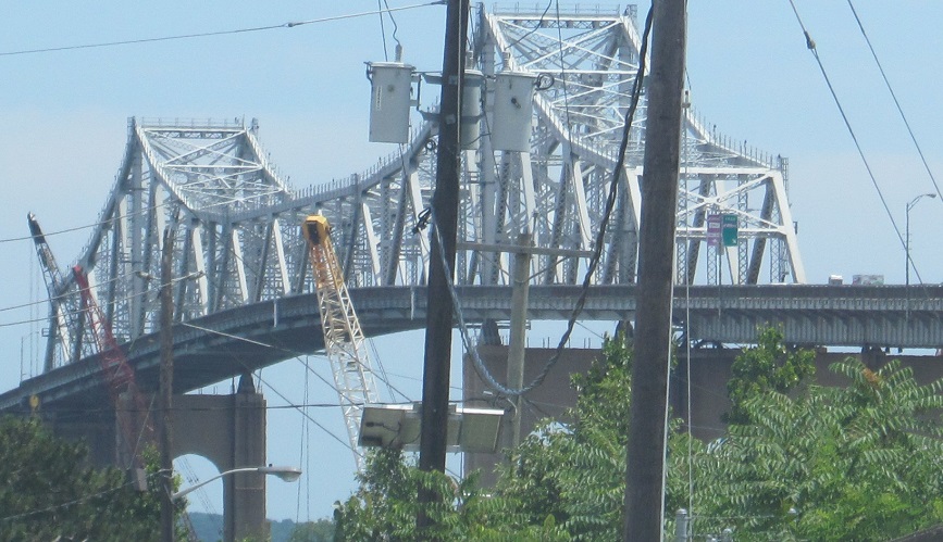 From Front St. in Elizabeth, Goethals Bridge behind Arthur Kill Vertical Lift.