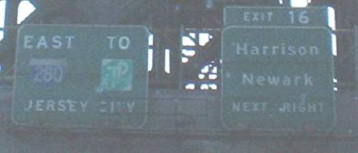 Closer views of the changeable message overhead, now featuring the newly opened Interchange 15X instead of button copy, and a daytime view of the last sign in the previous run. Even though I-280 is Exit 15W, not only is it a full interchange with both alignments, but it in fact defined to end at the Easterly Alignment, at the ends of the two spindly ramps through the Meadowlands. Exit 15E, US 1-9 Truck to the Holland Tunnel or Newark Airport, is also accessible by both alignments. But Exit 17 to Secaucus is only on the Easterly Alignment.