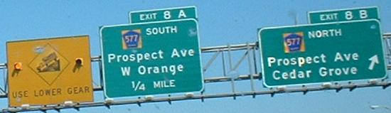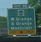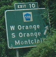 Again notice the size of the yellow square around the county shield. Also, CR 508 (remember that from further east?) doesn't come anywhere near Montclair. There are little NORTHFIELD RD. green signs before Exit 10 WB and Exit 9 EB; while it's useful at Exit 9, since CR 508/Northfield (which anyway is an Ave. here) isn't signed on BGS's, it's kind of redundant here. More useful would be the knowledge that Mt. Pleasant Avenue can be reached from Exit 10, since that turns into NJ 10 to the west.