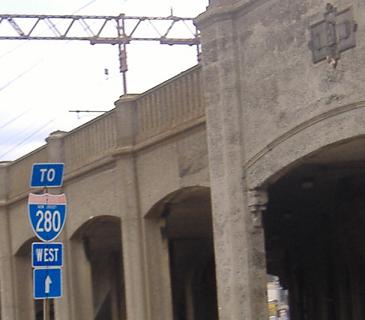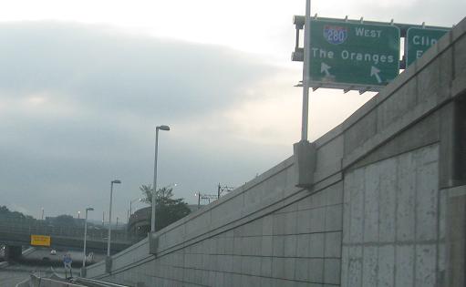 Click to drive through the interchange, over the new ramp, to I-280 westbound through East Orange.