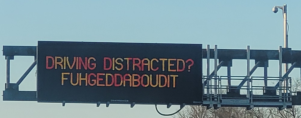 NJDOT got creative with VMS messages in the late 2010s and got their hands slapped because the messages could be distracting. Apparently things changed again in 2024 because just attempting to read the bottom word will distract you from driving, which is what they don't want you to do... but they'll watch you do it with that camera. This was nearing I-80 and the message was also on 80 and some other area roads.