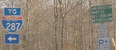 Ridgedale Ave. SB in Morristown at Exit 36 (first), Stelton Rd. WB and S. Washington Avenue (CR 665) NB (second and third, respectively) in Piscataway. The last photo is Harter Rd. EB at James St., in Morris Township (the outskirts of Morristown). The Rt 24 referenced here is former NJ 24, not the modern freeway-only route.