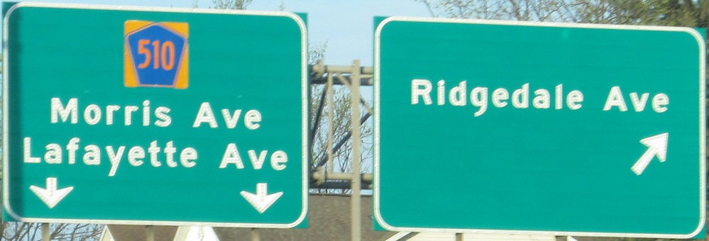 The 2nd/3rd photos are left/right on the same gantry and the last two are on the Exit 36 ramp and the Ridgedale Ave. spur of that ramp, respectively. The latter is very short, and has a blind curve just before a traffic light; I'm surprised there aren't more accidents there. In case you're wondering, the ¼-mile BGS is the first warning there is. I suggested making the contractor at the NJ 24 ramp widening install a 1-mile BGS (with adequate compensation), but the resident engineer figured it wasn't worth the administrative hassle.