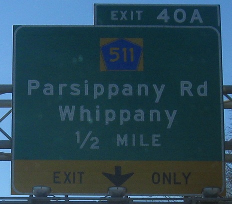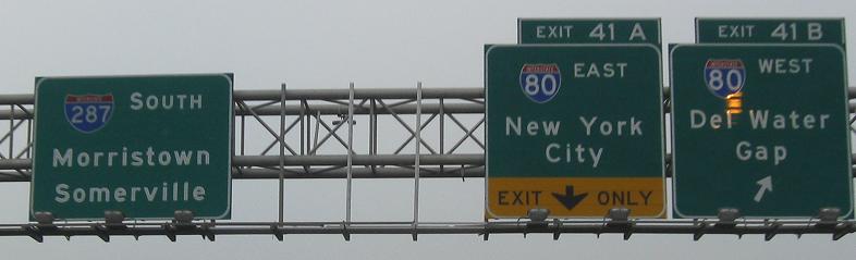 In 2013, there were periodic closures of the SB-EB ramp to I-80, which resulted in a detour posted from Exit 41A (first photo) onto Exit 40A (second photo), jogging left to head back north on I-287 (last photo) to its I-80 EB exit. All with wide shields.