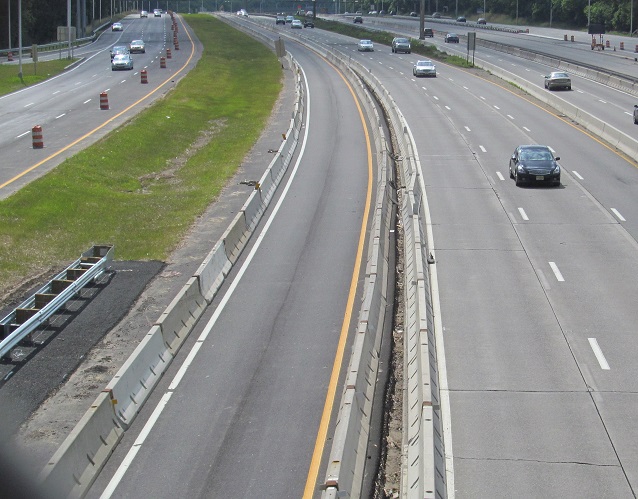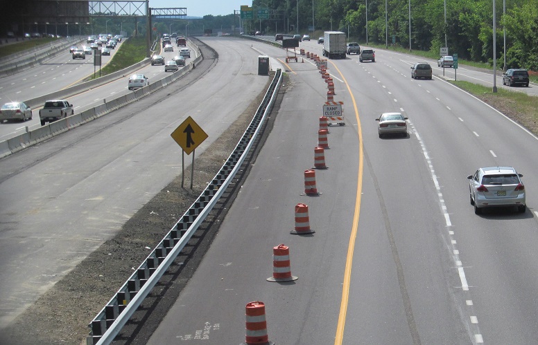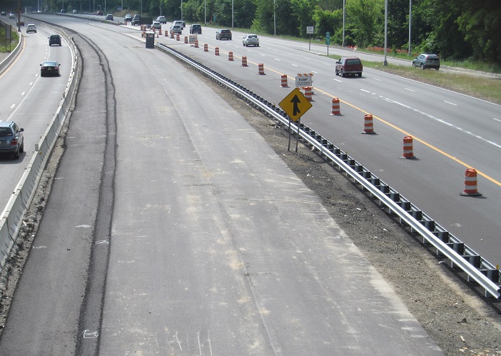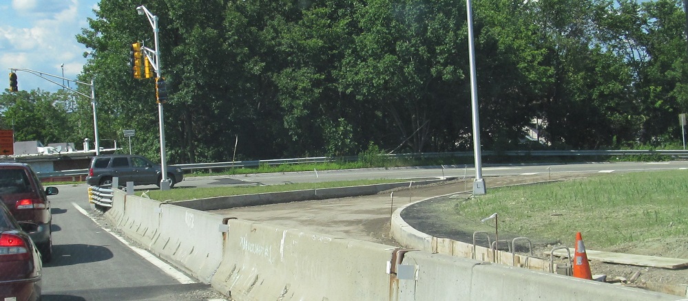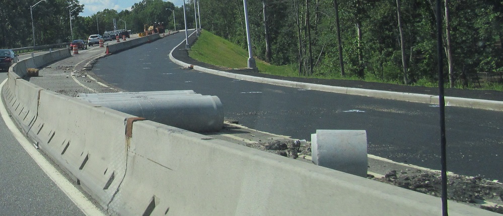 Also visible from the ramp to I-287 NB: construction of a new ramp with a shallower radius to benefit trucks. It's now open.