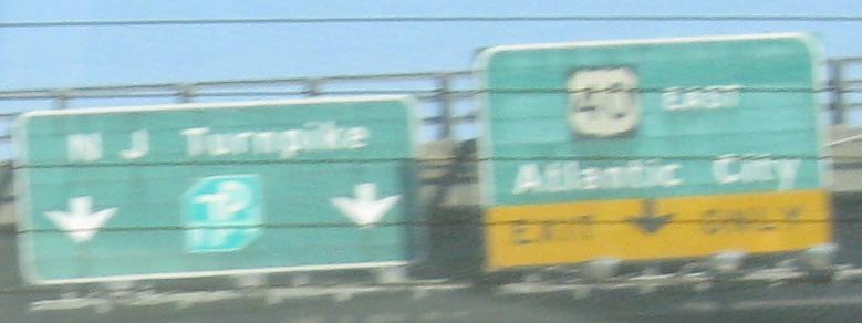 1976 bicentennial bridge sign (hence the seal at the lower left), pointing along NJ 73 NB toward NJ 38.