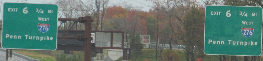 In November 2014, the extension of the dualized roadways from "Interchanges 6-9" resulted in a length of such south of Exit 6 on NJ 700. These were the last signs manufactured in the old Turnpike style, featuring a giant exit number and, I suppose, the distance next to it, instead of a standard exit tab and distance location. "South I-95" is hidden until PA completes its decades-late connection in 2018, but there's no reason the pull-through couldn't list North I-95.