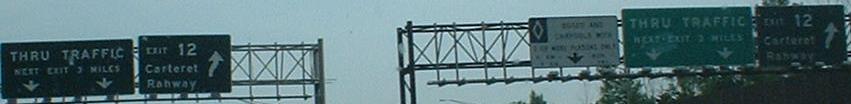 NB Exit 12 signage, amazingly leading to no routes whatsoever. Clicking on either of the last two photos gives you the car lane sign closer up (car lanes are inner, car-truck-bus a.k.a. truck lanes are outer).