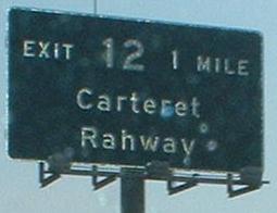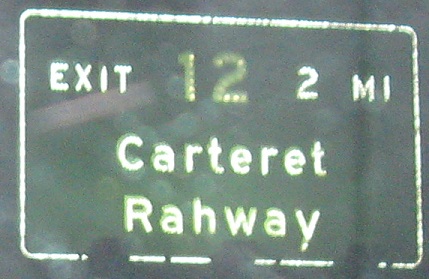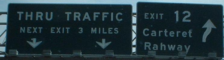 That's the last old Exit 14 sign left on the Turnpike; all the new ones group US 1 and US 9 closer together, reflecting their conjoined status. I guess except for the one on the ramp, which also uses "New'k" so I can just ignore it.