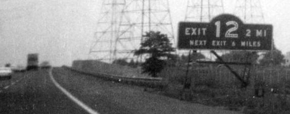 Same place courtesy Michael Summa, when the inner lanes (now car-only) were still under construction in 1969. The original humped exit signage is already losing reflectors, which is why they've all been gone for so many years. Also gone is the Turnpike's practice of erecting advance "KEEP RIGHT" signs, figuring the overhead sign does the job well enough. Incidentally, I wouldn't be surprised if that's the same signage as in my photo (including the then-covered ones on the inner lanes).