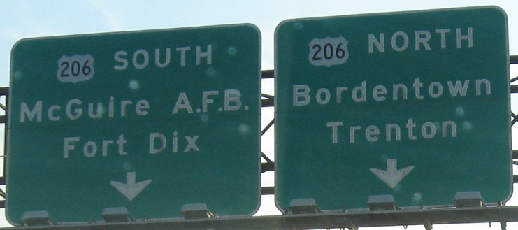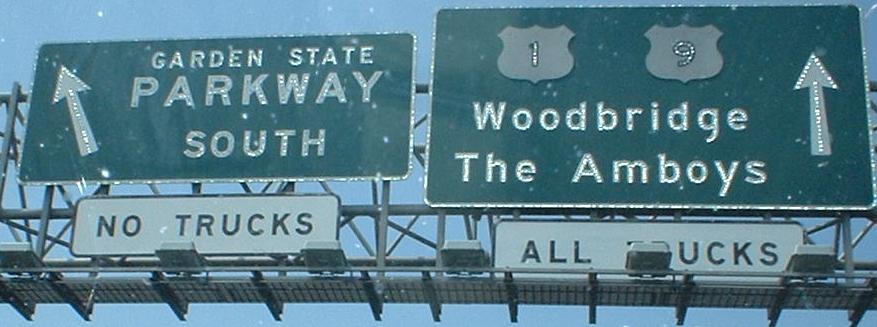 These are off Exit 8A, with the ubiquitous "Obey the law" signs and nearly the beginning of NJ 32. Despite that sign, NJ Straight Line Diagrams say that NJ 32 begins where the ramps from I-95 connect to the overpass, although all other official documents suggest 32 begins at the eastern end of the overpass, across I-95's 10 (soon to be 12) lanes. I'm inclined to believe the latter, since it would be difficult for NJDOT to have built only part of an overpass, and they wouldn't turn over some but not all of it to the county as Middlesex CR 612. Oh yeah, and maintenance and signage both put the terminus at the overpass' end as well.
