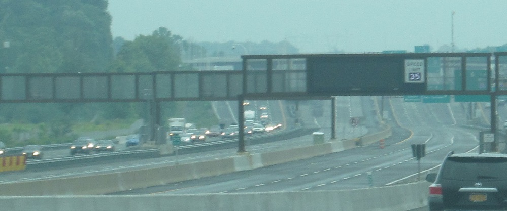 You can see there's just more of the same approaching the exit, afflicting both the new outer lanes (where everyone is while the inners are redone) and the old mainline (35 mph for work vehicles only).