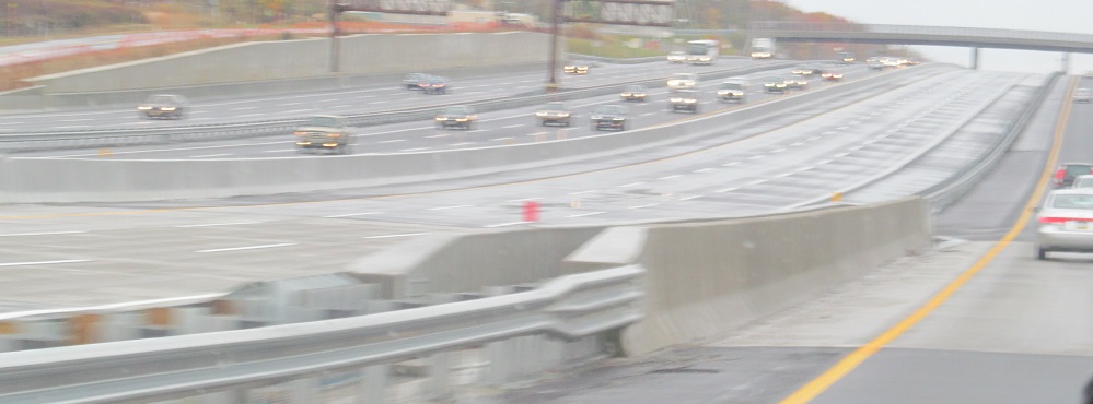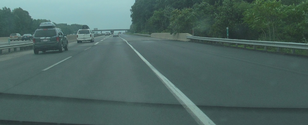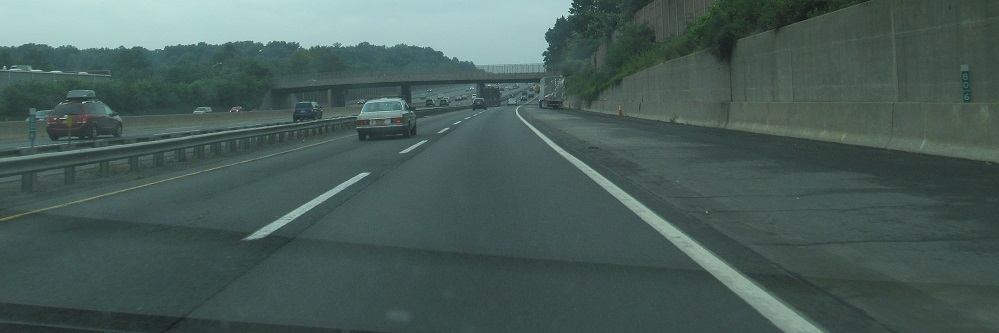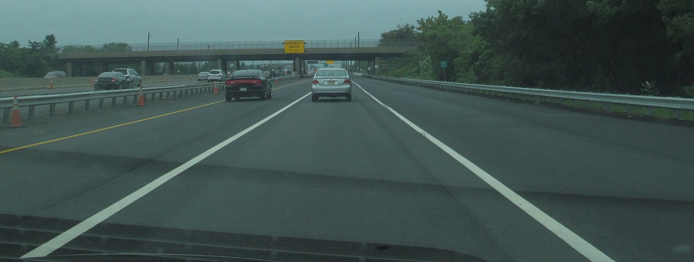 More views of something you'll never see again, the 2-lane outer roadway from Interchange 9 (fully widened in 2014) merging into the 3-lane inner roadway after Interchange 8A.