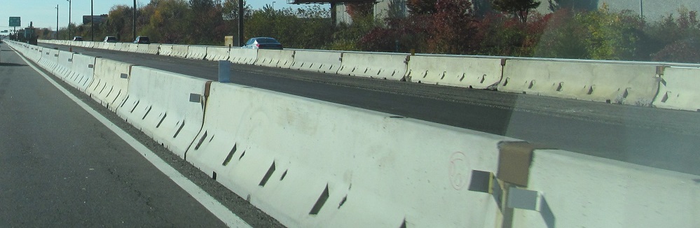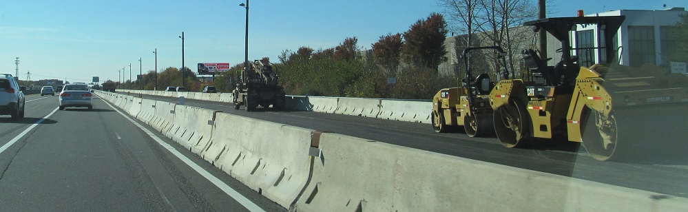 Just before the inner lanes are ready to open, the warnings are dire. But with every entrance closed, how would you even get in there? These photos were taken 11/1/14; the NB lanes opened 10/26 and the SB lanes opened 11/3, so it's a unique time to see traffic in two roadways NB but only one SB. (This can still happen during construction, but it's less special.)
