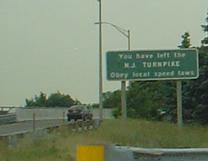 The first two are Westerly Alignment, the last two are Easterly Alignment, and all four courtesy HNTB and now gone. They are all NB and thus where the local/express setup is about to begin. But first, the I-80 ramp leaves to become the innermost roadway on this short stretch of free I-95. These original signs (well, not from the original four-lane Turnpike, obviously) have motorized panels that can display different messages (usually three). Most of these have now replaced their panels with reflective lettering, but a few still have button copy.