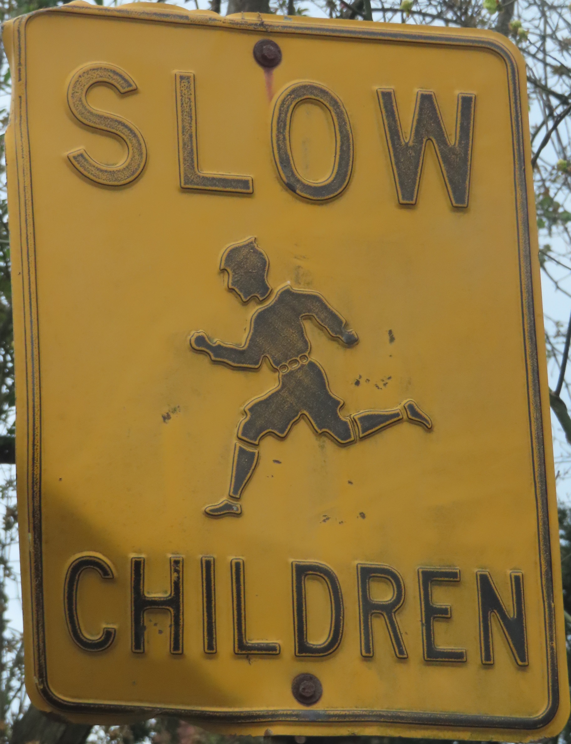 Street signs in order of age. More recently than even the first photos, the white on green embossed signs have been replaced by flat, boring reflective signs. The second picture shows DEAD END on a stick, which most communities don't do. Then the black and white signs appear to be even newer than the white-on-green, although my guess is that they're older but with better paint jobs. The last photo is the oldest, square style.