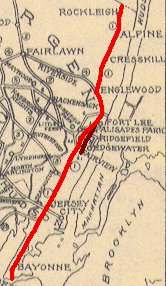 ROUTE No. 18--NORTH (1917). FORT LEE TO NEW YORK STATE LINE, via Englewood Cliffs and Alpine. ROUTE No. 1. NEW YORK STATE LINE AT ROCKLEIGH TO BAYONNE, via Rockleigh, Alpine and Cresskill, Englewood, Fort Lee, Palisades Park and Ridgefield, Township of North Bergen in Hudson County, Jersey City and Bayonne. L. 1927, c. 319. ROUTE NO. 1. Alpine to Bayonne. Beginning at the New York state line on state highway route heretofore designated as Route No. 18--north in Alpine and terminating in Bayonne, by way of Alpine, Tenafly, Fort Lee and Ridgefield, in Bergen county, North Bergen, Jersey City and Bayonne, in Hudson county. L. 1929, c. 126, p. 215, s. 1. |