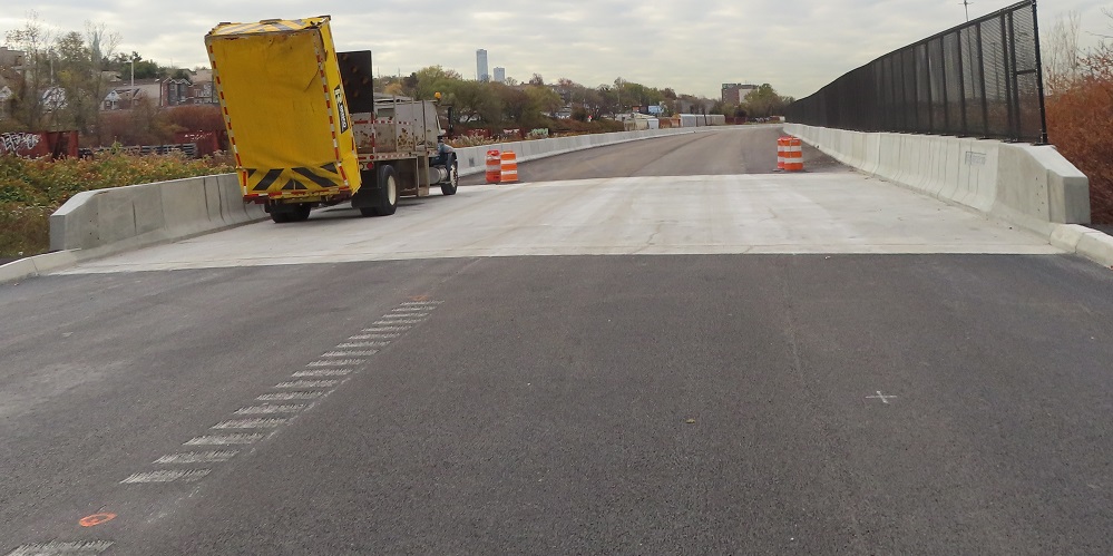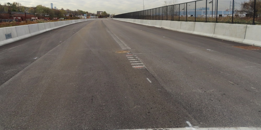 Photos were taken in November 2022, when the road itself was fully constructed from County Rd. (CR 653) to Secaucus Rd. (CR 678) but adjacent work continued.