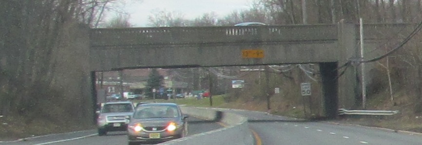 Walking the wrong way down the former WB jughandle for Walnut St. in Livingston, Essex CR 607. It was converted to a far-side jughandle via Daven Ave. several years ago, and some part of the original ramp was either left intact or paved over, or a combination of both. I report, you decide.