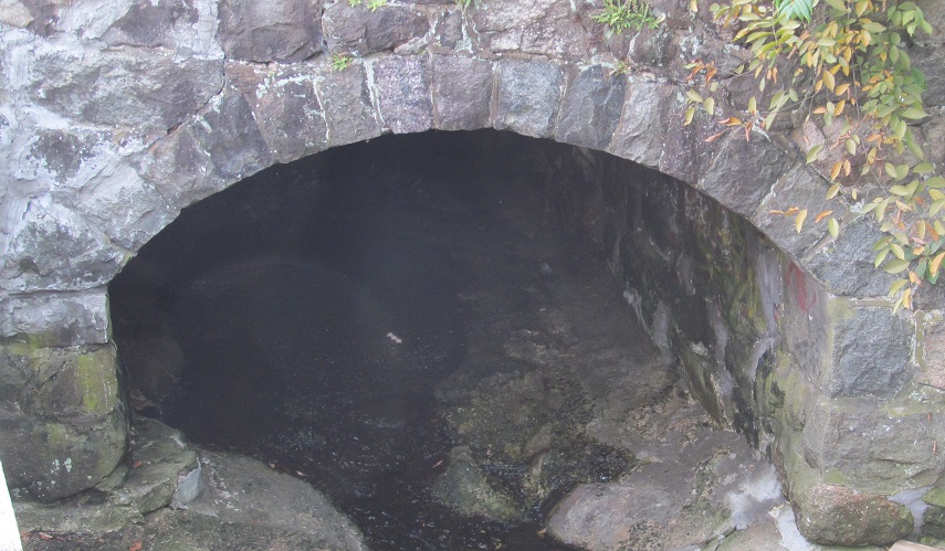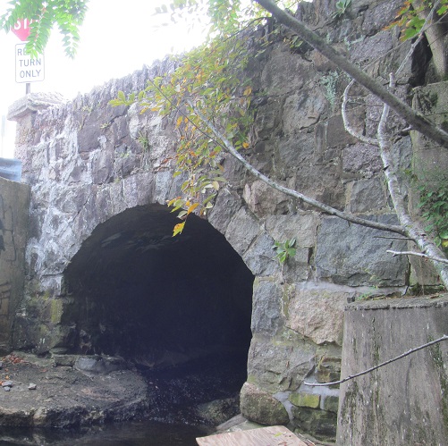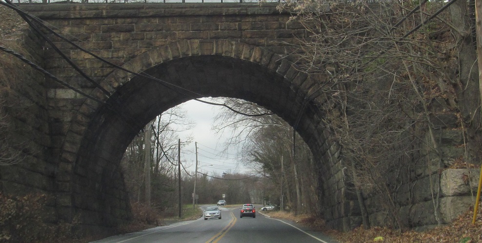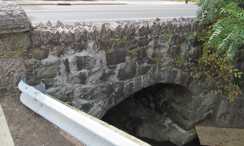 The EB side of an old stone bridge by Van Doren Ave. in Chatham.