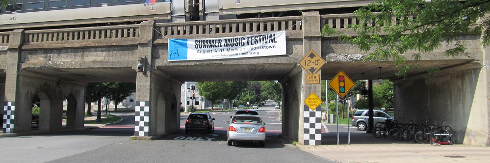 NJ 124 WB leaves downtown Madison by crossing under this low bridge. This was once the main road from Newark and Elizabeth to Morristown. 12'-9".