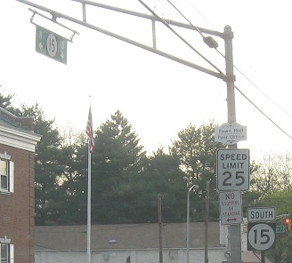 Some NJ 15 shields that no longer belong, and one of the only indications that you are on a formerly state-maintained road (well, that and the last course of pavement to be put down by NJDOT is still in place). Clinton Street will revert to Dover maintenance.