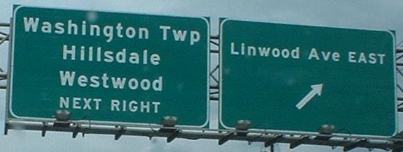 This is the only example I've seen in NJ of a CT-style outlined shield - the only other button-copy shields on NJ BGS's have the proper color backgrounds (scroll up to I-80). Van Emburgh Avenue makes NJ 17 have some crazy ramps in this area, and is responsible for both this ramp between Linwood Avenue EB and WB, and the only other (?) truly original sign on this part of 17, which is southbound (link at bottom).
