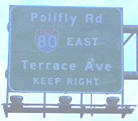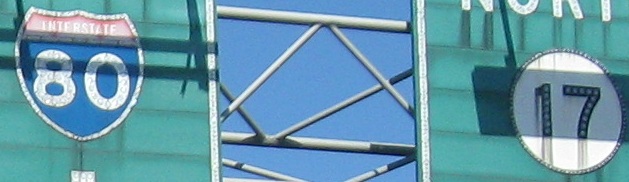And then things get cool. The last BGS is fairly normal, with some pretty cool older state-name and yellow-background shields. But the two before it? You may notice that the 17 has no black square, and that both the 17 and 80 look a little funny. Well, they are a little funny. They have button copy numbers, and in the case of I-80, button copy outline as well. Other than the N.J. Turnpike, the only other road I've seen with one of these shields in NJ is US 46. Click on the third photo for a closeup of them.