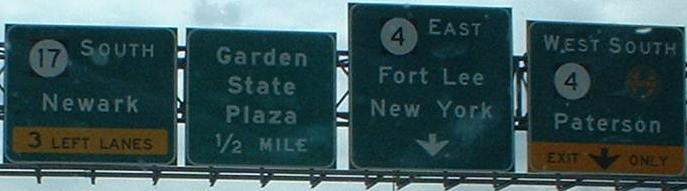 NJ 4 overhead signage is all-new both directions, but the NJ 17 LGS is still vintage from the cloverleaf era.