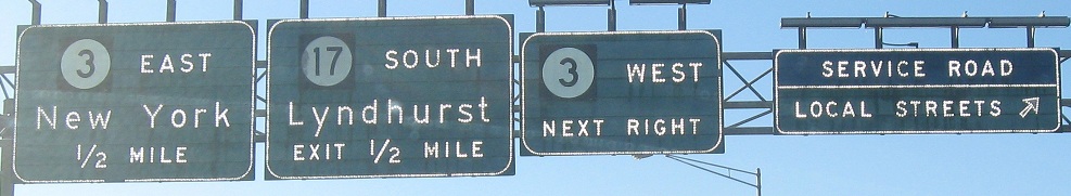 The signage from the service road exit that immediately precedes NJ 3 (the service road is for the entire 3/17 interchange).