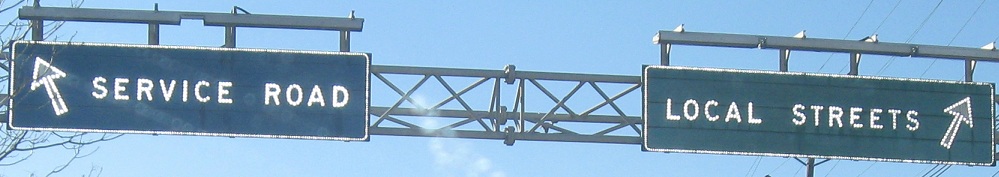 I don't know about you, but when a sign tells me an exit is in a quarter mile, I tend to exit in a quarter mile, not immediately - so why the arrow? Click on the penultimate photo for a closeup of the exit sign; the one on the left was replaced.