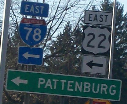 WB at the circle above I-78 Exit 11; Pattenburg is via CR 614. First and third photos (really part of the same original) courtesy Doug Swift.