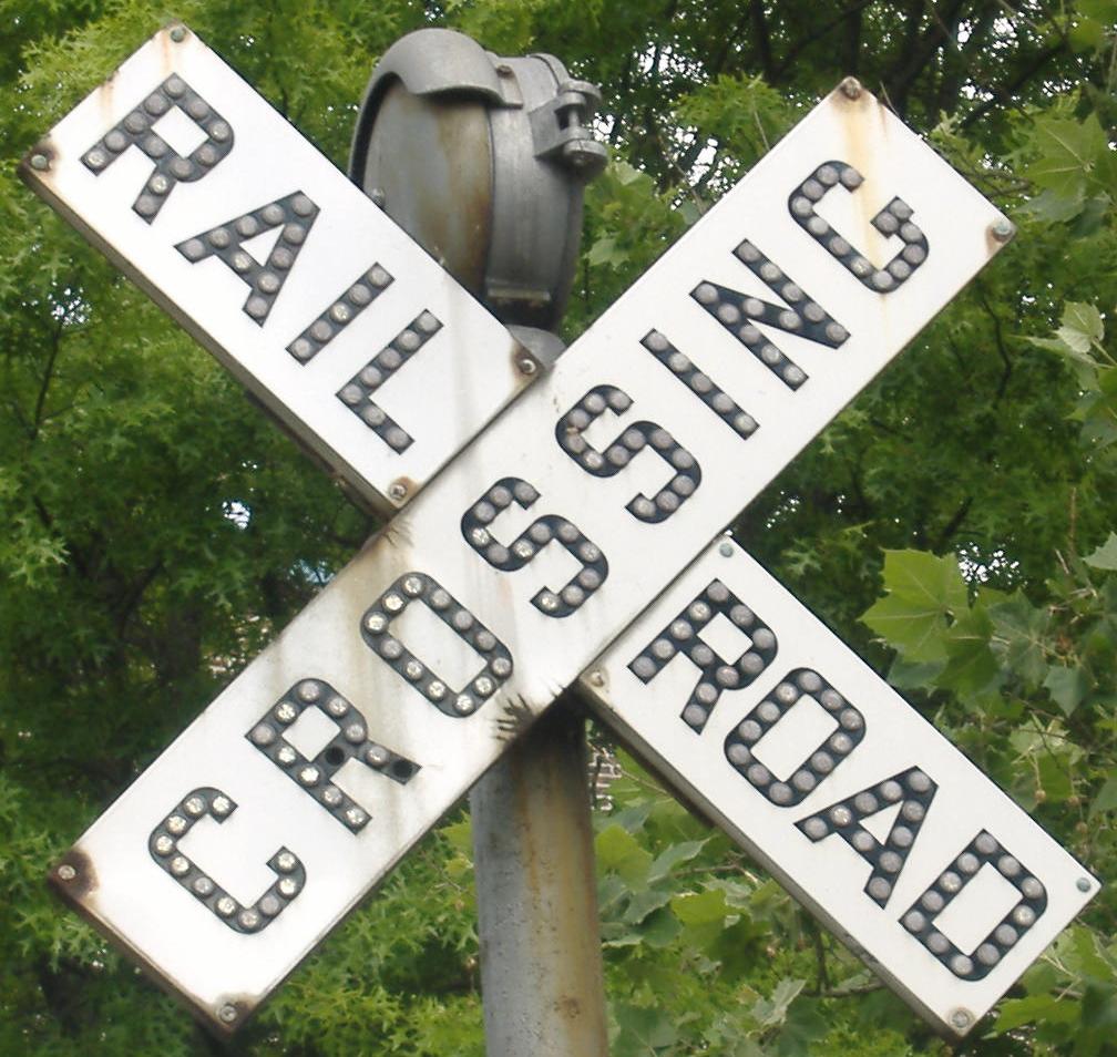 In Lambertville, the riverside train tracks get authentic button-copy crossbucks SB and NB, respectively; click on the NB photo for the large size.