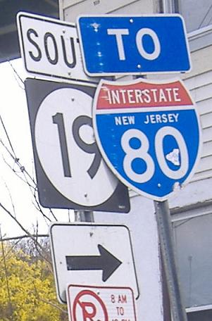 This was on NJ 19 SB at Valley Road, the first exit south of I-80. It's gone, replaced by a new fully reflective copy, or else I'd have my own version of it up.