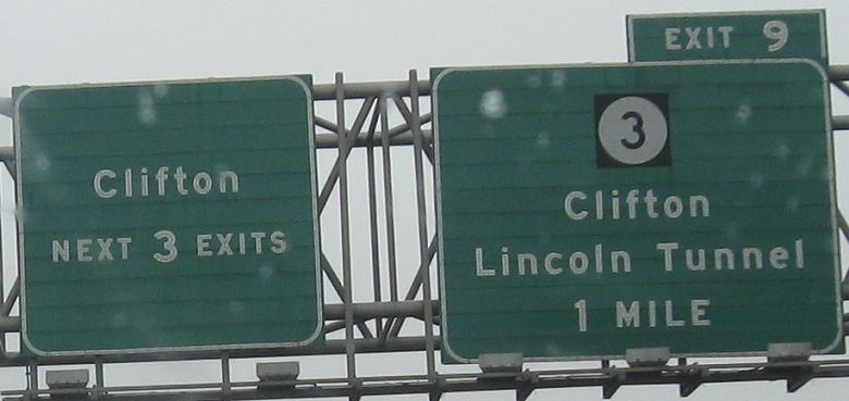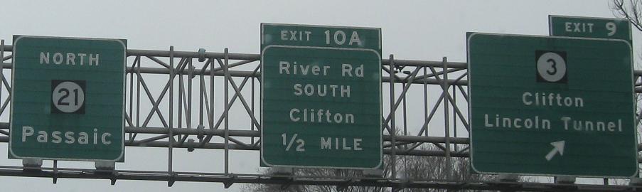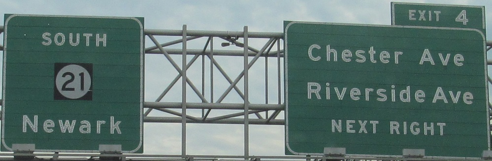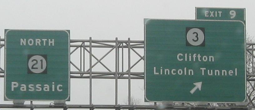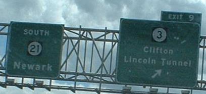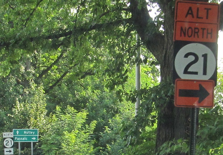 The first and second BGS's on NJ 21 coming off of US 46. The first one is actually before 46 East even passes over the newly formed NJ 21. Until 21 was complete, this was an interchange that led from 46 to Lexington Avenue, so that movement's been preserved from WB and to EB US 46, but the only way the western half of 46 gets to use the interchange is by pulling a U-ey... see the US 46 page for more details.