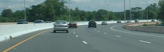 A cool feature of the new freeway that was constructed north of Exit 11, finally completing NJ 21 after 30-40 years of planning, is that the concrete has been tinted to a slightly pinkish color. It's pretty nice as a change, especially with matching sound barrier - beats drab whitish-yellow any day. The colorful tile on a bridge parapet is courtesy HNTB Corporation - as is the photo.