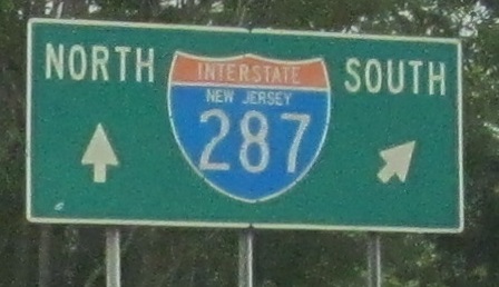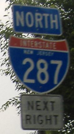 Let's go eastbound just so we can get an original I-287 shield in the mix, barely poking up above the overpass pedestrian fence.